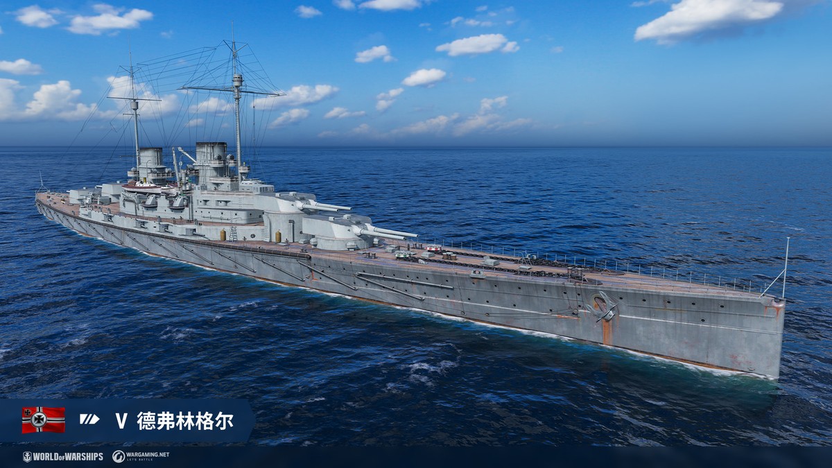 V 德弗林格尔号是第一次世界大战时期的战列舰,在日德兰海战中声名鹊起。该舰是以三十年战争中一位著名的陆军指挥官的名字命名的。德弗林格尔号装备了8门305毫米火炮和多门精准的副炮。该舰有优秀的航速、对于战列舰来说较低的被发现的可能性,并且配备了冷却时间缩短的快速伤害控制小队消耗品。