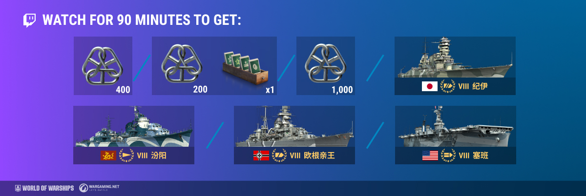 您可通过观看下列频道的直播获得Twitch掉宝:《战舰世界》官方频道,或其他正在玩《战舰世界》并启用掉宝的Twitch主播的频道。请确保您的Twitch账号已与您的Wargaming账号进行关联,否则无效!